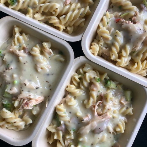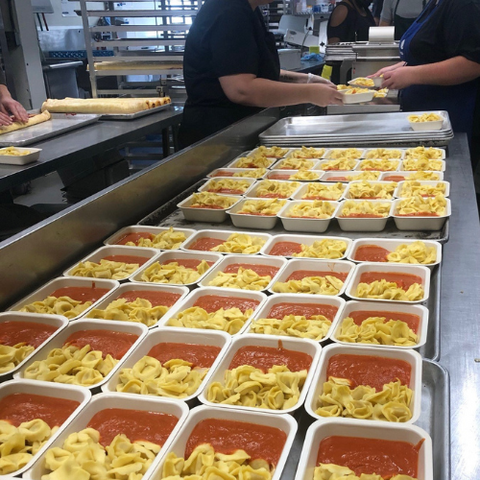 Our meals, kept hot in thermal boxes, are served in compostable containers. Each child receives their meal at the start of lunch. Mazzola offers up to 9 varied choices per day, including options for allergies and dietary restrictions.